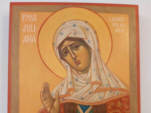 Asun Heinolassa ortodoksisessa Juliana-yhteisössä, jonka esikuvia ovat läntisen Euroopan myöhäiskeskiajan beginaatit. Beginaatit olivat naisten vapaamuotoisia hengellisiä yhteisöjä, joissa naiset rukoilivat, tekivät työtä ja loivat hengellistä taidetta. Miellän olevani moderni begiini, joka työstää taiteellaan ortodoksista hengellisyyttään. Maalaukseni ja kirjoitukseni syntyvät keskellä yhteisön elämää, rukoillen ja työtä tehden. Maalaaminen ja kirjoittaminen ovat minulle tapoja rukoilla, rukous lävistää maalaukseni. Maalatessani pyrin samaan läsnäolemiseen ja rukouksen henkeen kuin ikoneja maalatessa.